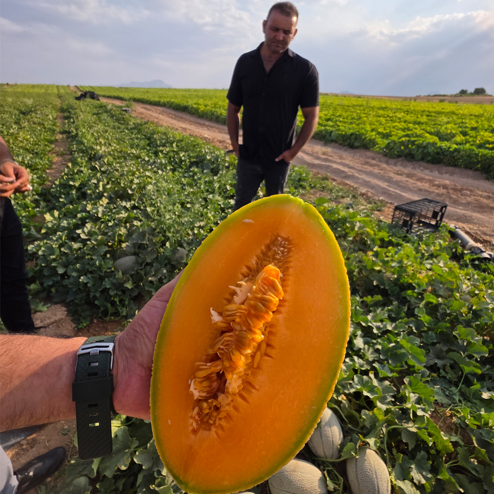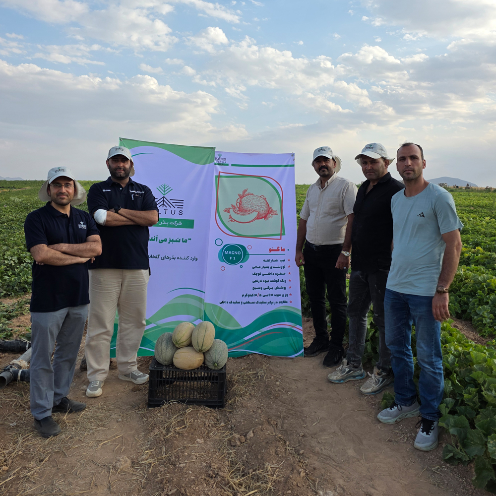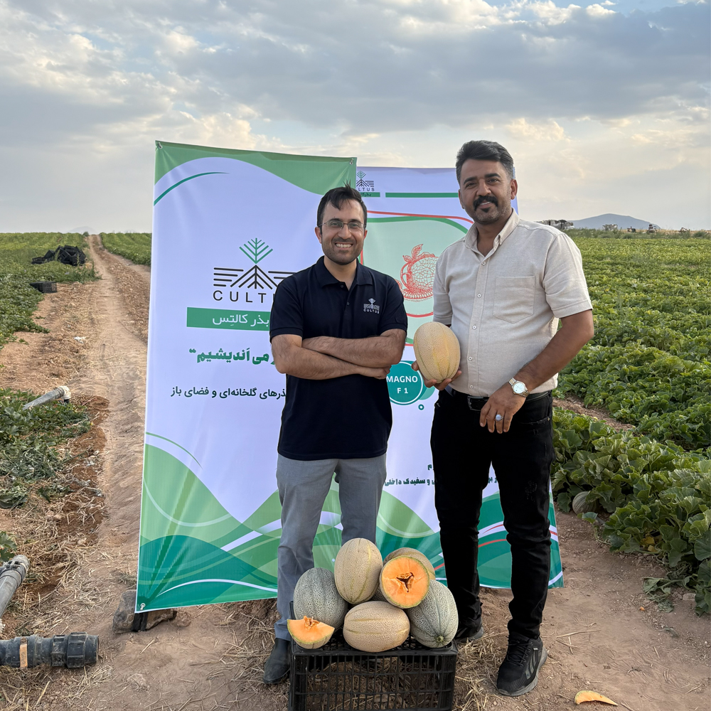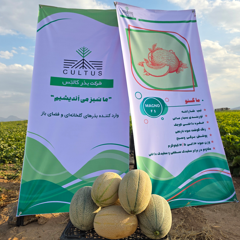 ملون رقم ماگنو یک رقم هیبرید مناسب برای فضای باز است که با باردهی بسیار بالا و پوشش برگی عالی رشد میکند. این گیاه زودرس بوده و در هر بوته 3-4 میوه تولید میکند. میوههای آن بیضیشکل با تیپ جانا، وزن 3-3.5 کیلوگرم و بافت سفت هستند. طعم شیرین و دلپذیر، توربندی مناسب با خطوط موازی و رنگ گوشت نارنجی از ویژگیهای بارز این میوه است. همچنین، حفره داخلی کوچک آن باعث میشود که این ملون برای مصرف تازه و بازارهای فروش ایدهآل باشد. این رقم در نواحی مرکزی و جنوبی ایران قابل کشت میباشد.